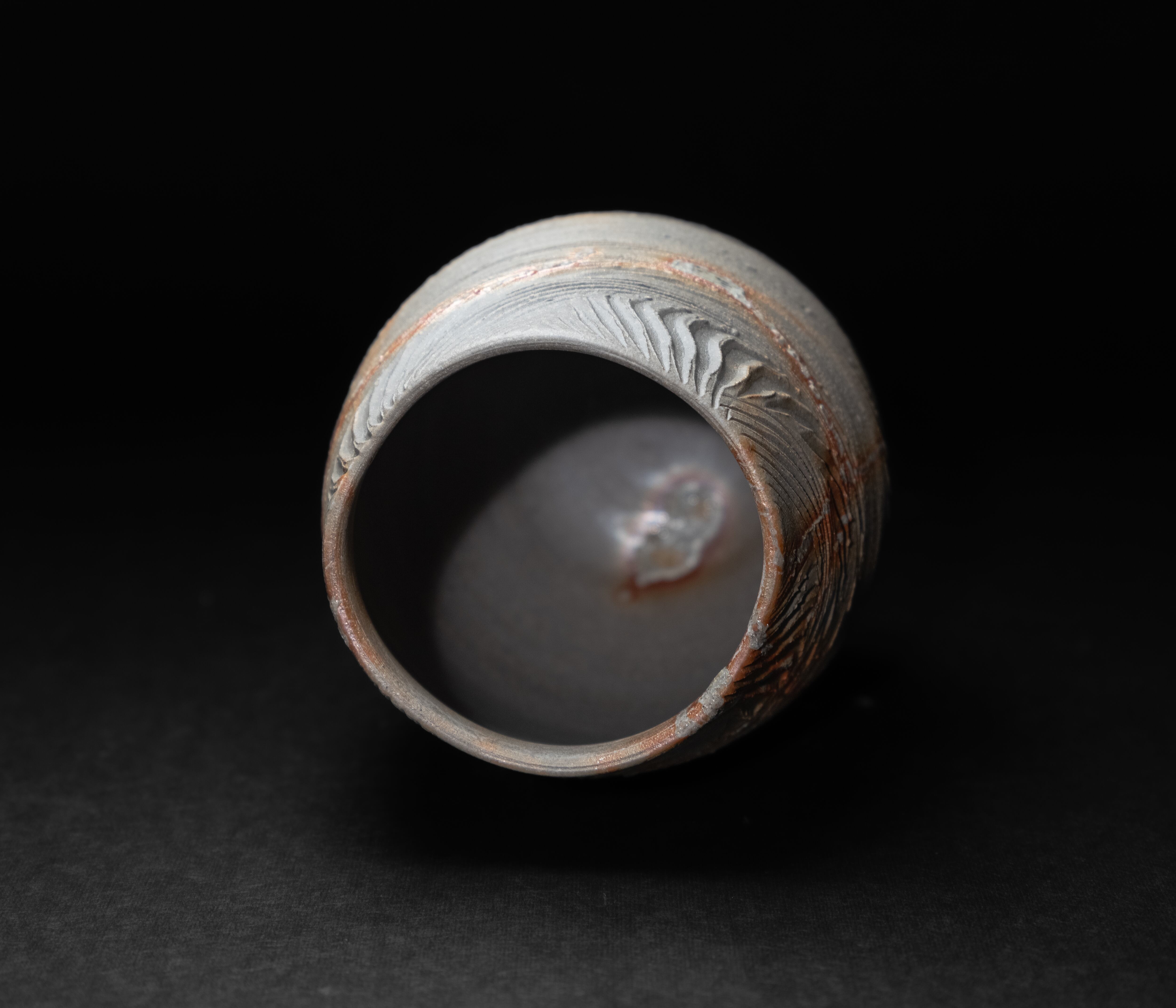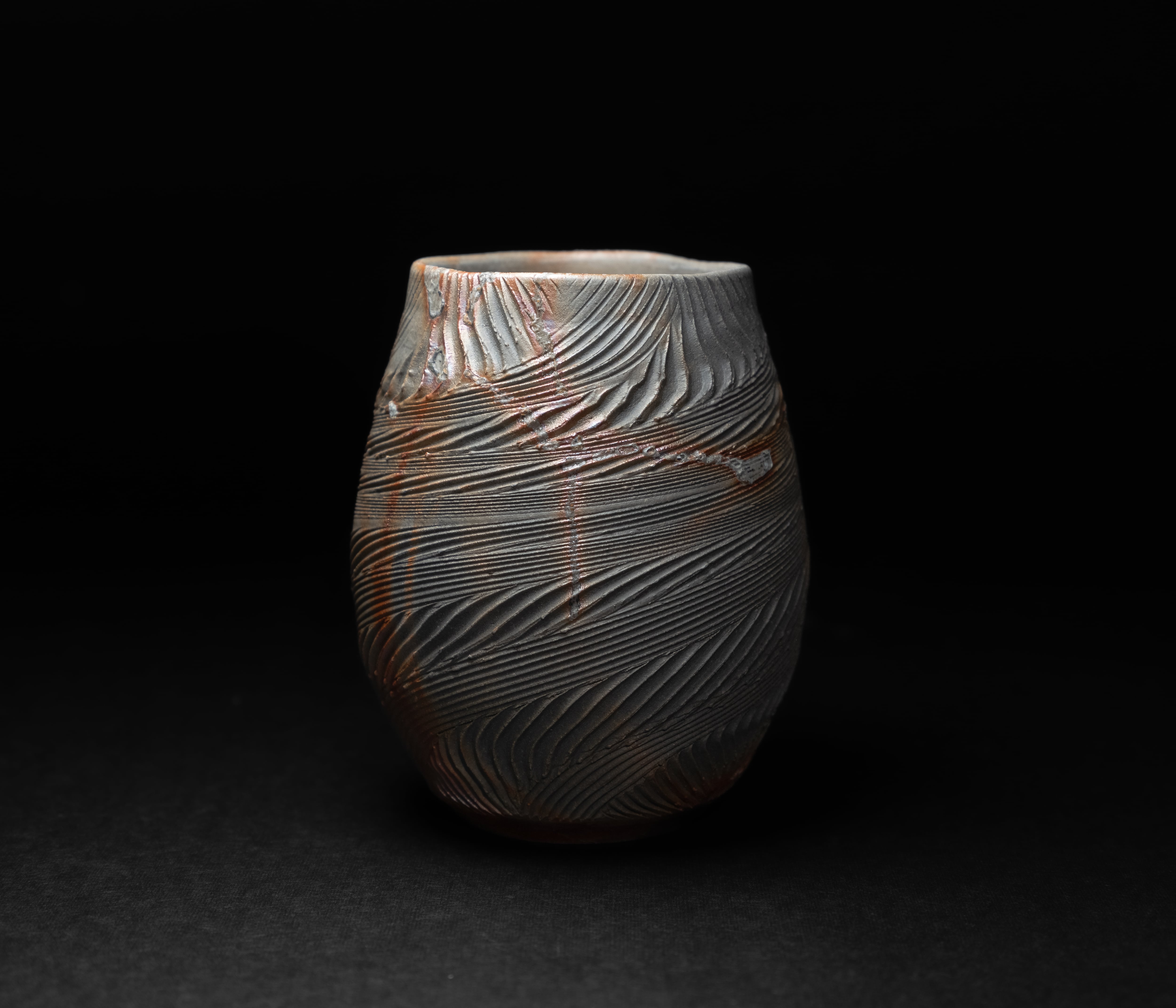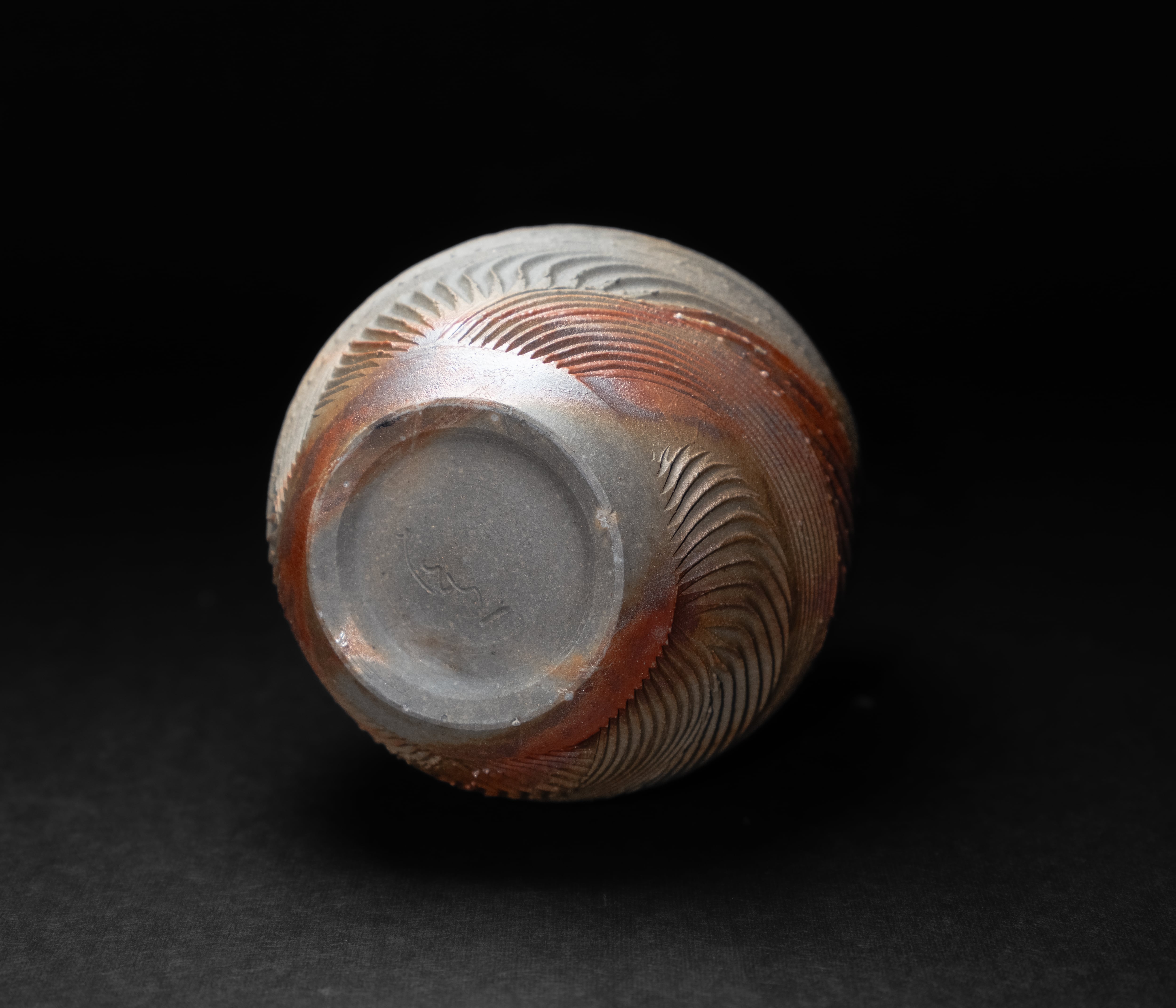 備前焼ならではの自然釉をまとった重厚感のある景色とが交ざり合い、世界でも唯一無二の作品となっています。