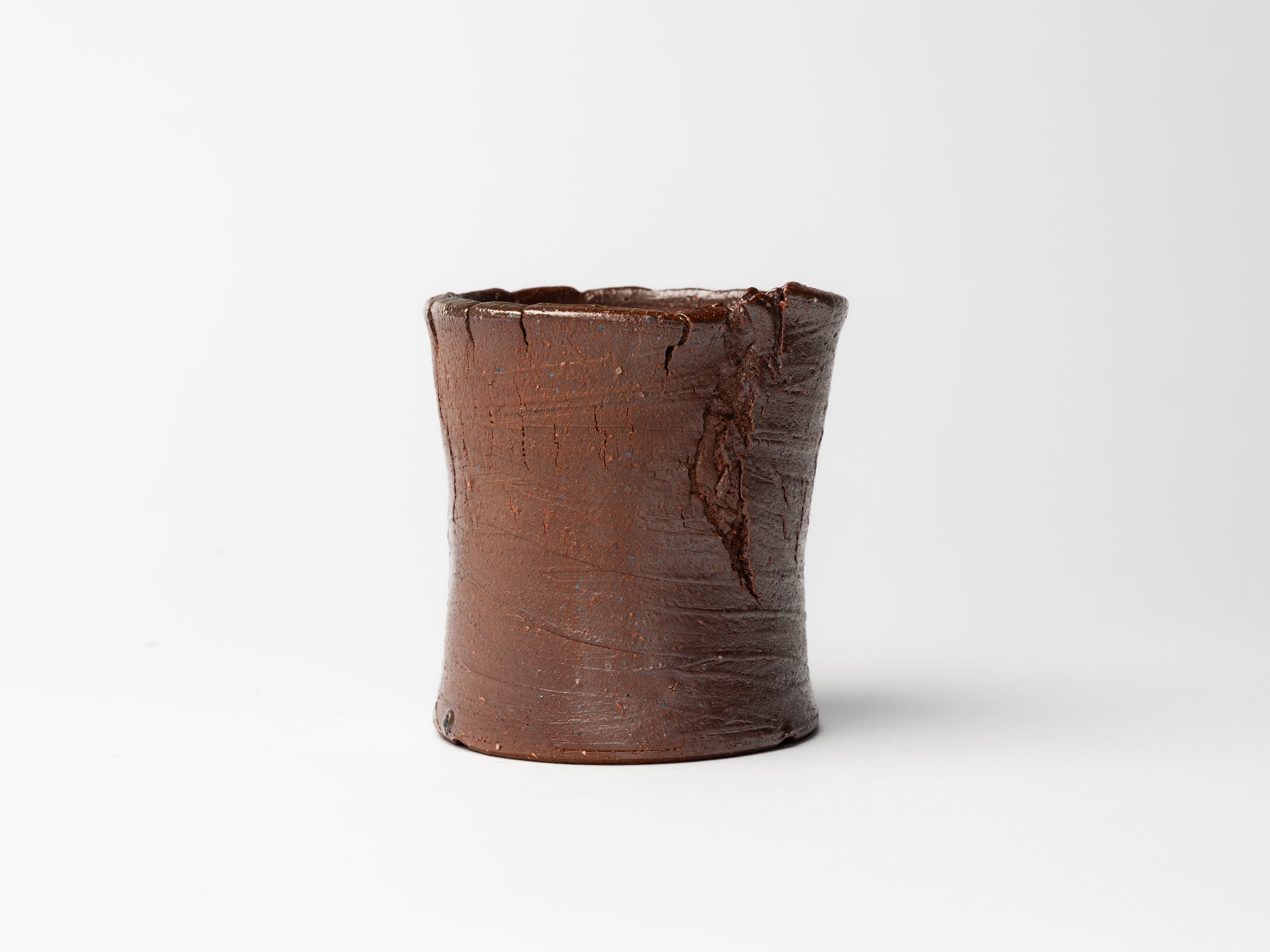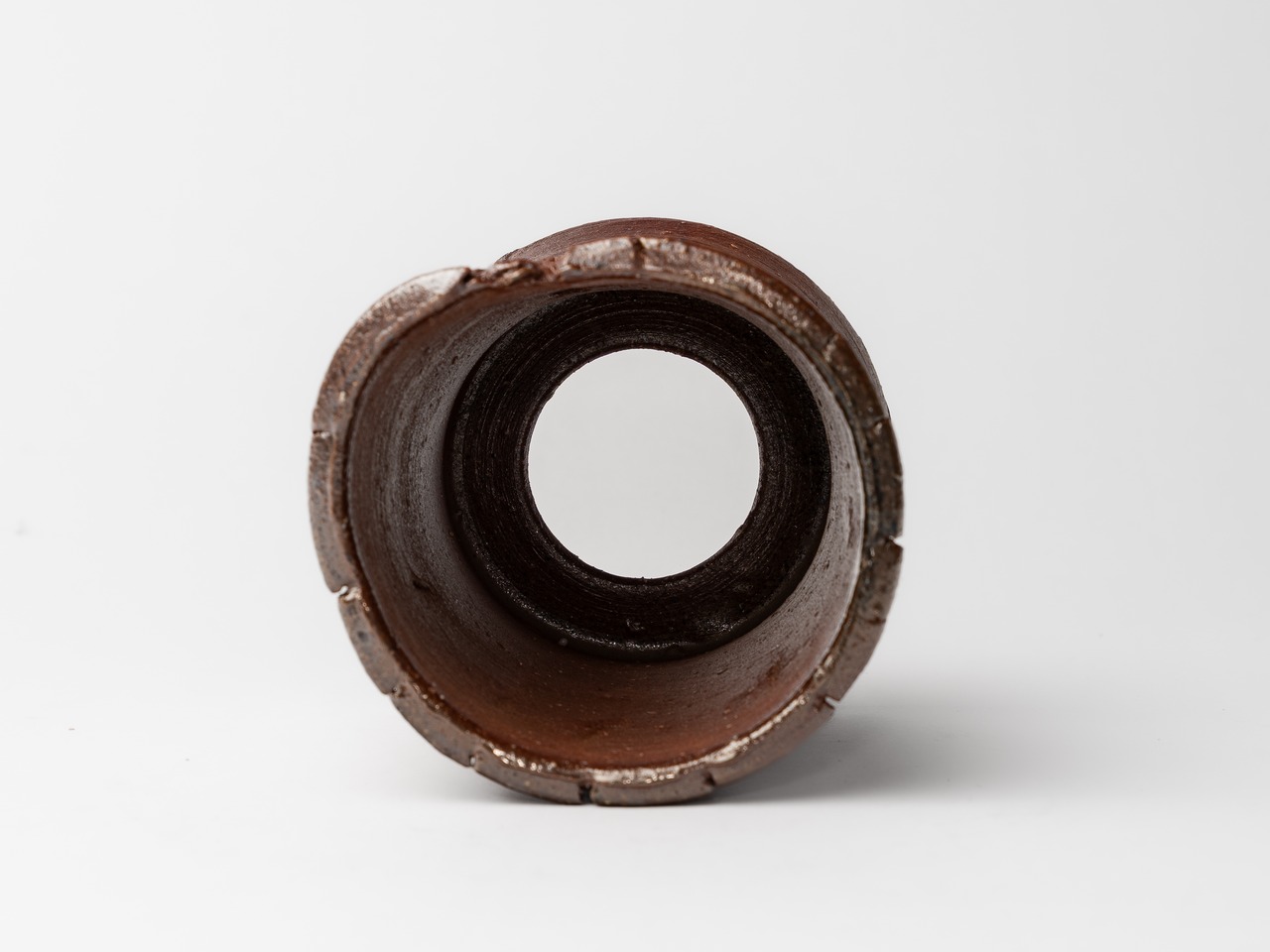 長い年月を経た木の幹を思わせる、ざらざらとしたテクスチャ。 その荒々しい表面には、焼成によって生まれた独特の光沢が宿っています。