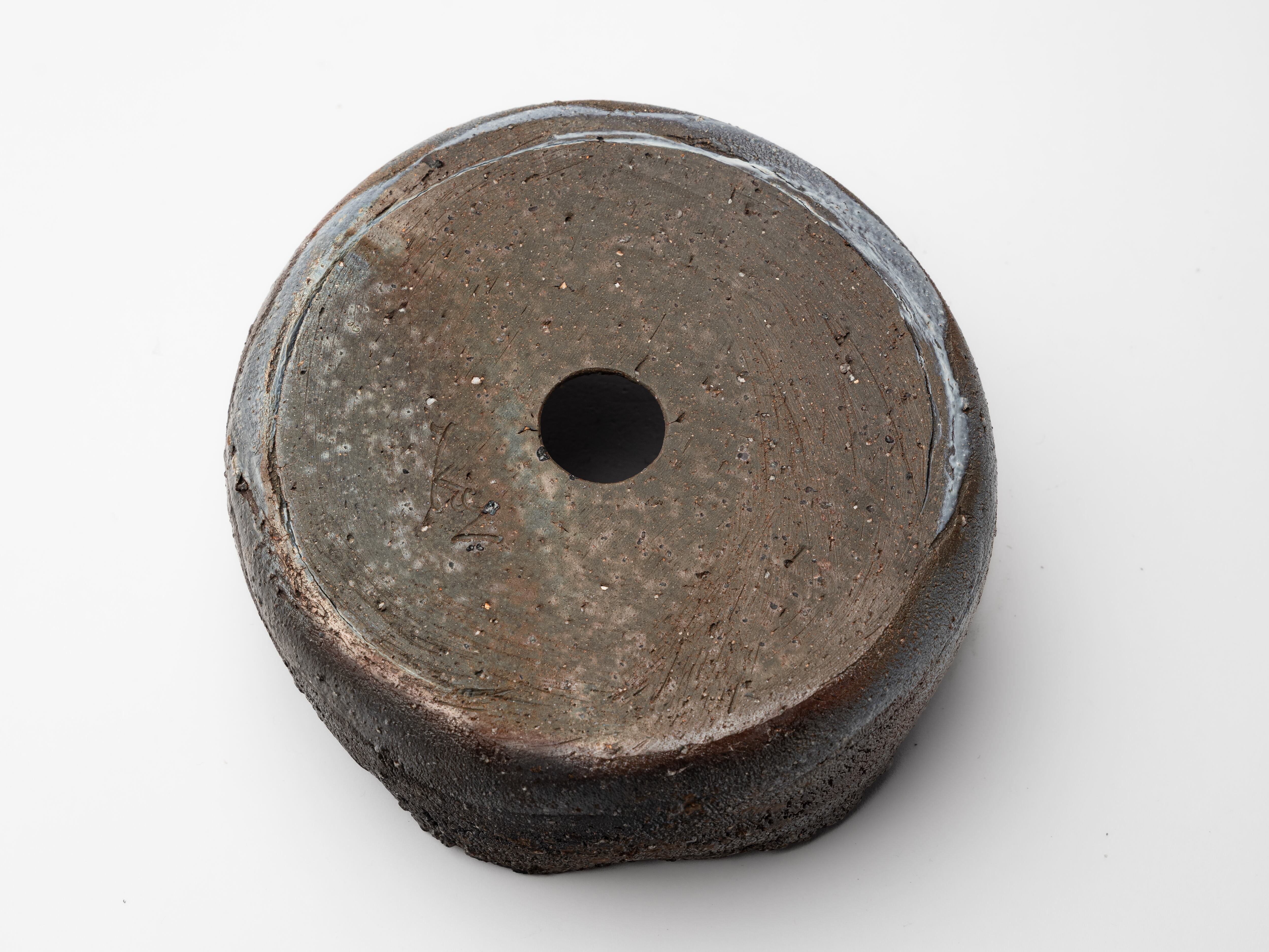 深く落ち着いた土色の肌に、刷毛で掃いたように施された「青みがかった泥」。 その静かなコントラストは、まるで夕暮れの湖畔や、夜明けの稜線のような景色を連想させます。