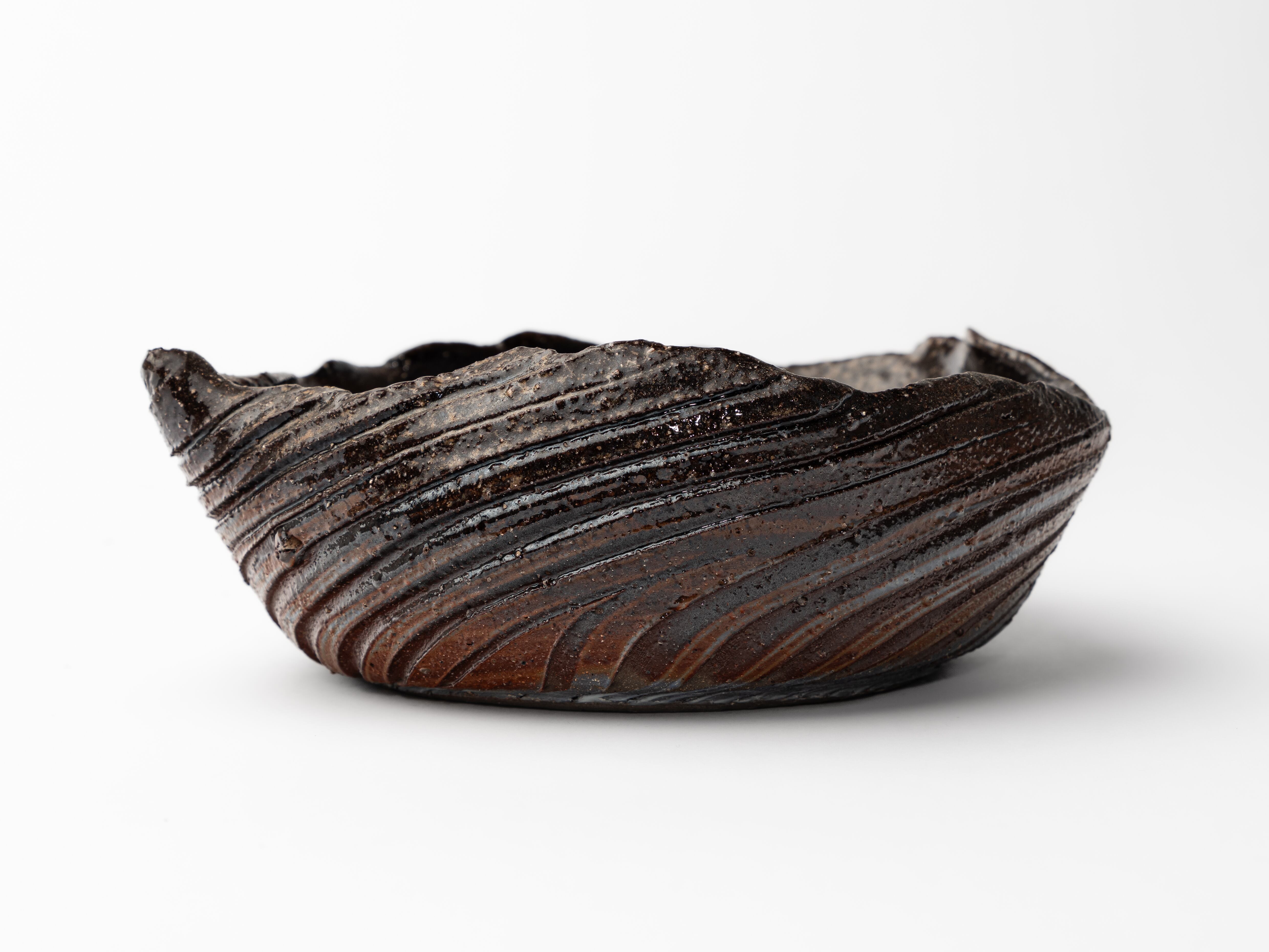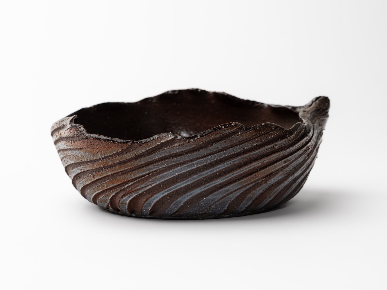 深く落ち着いた土色の肌に、刷毛で掃いたように施された「青みがかった泥」。 その静かなコントラストは、まるで夕暮れの湖畔や、夜明けの稜線のような景色を連想させます。