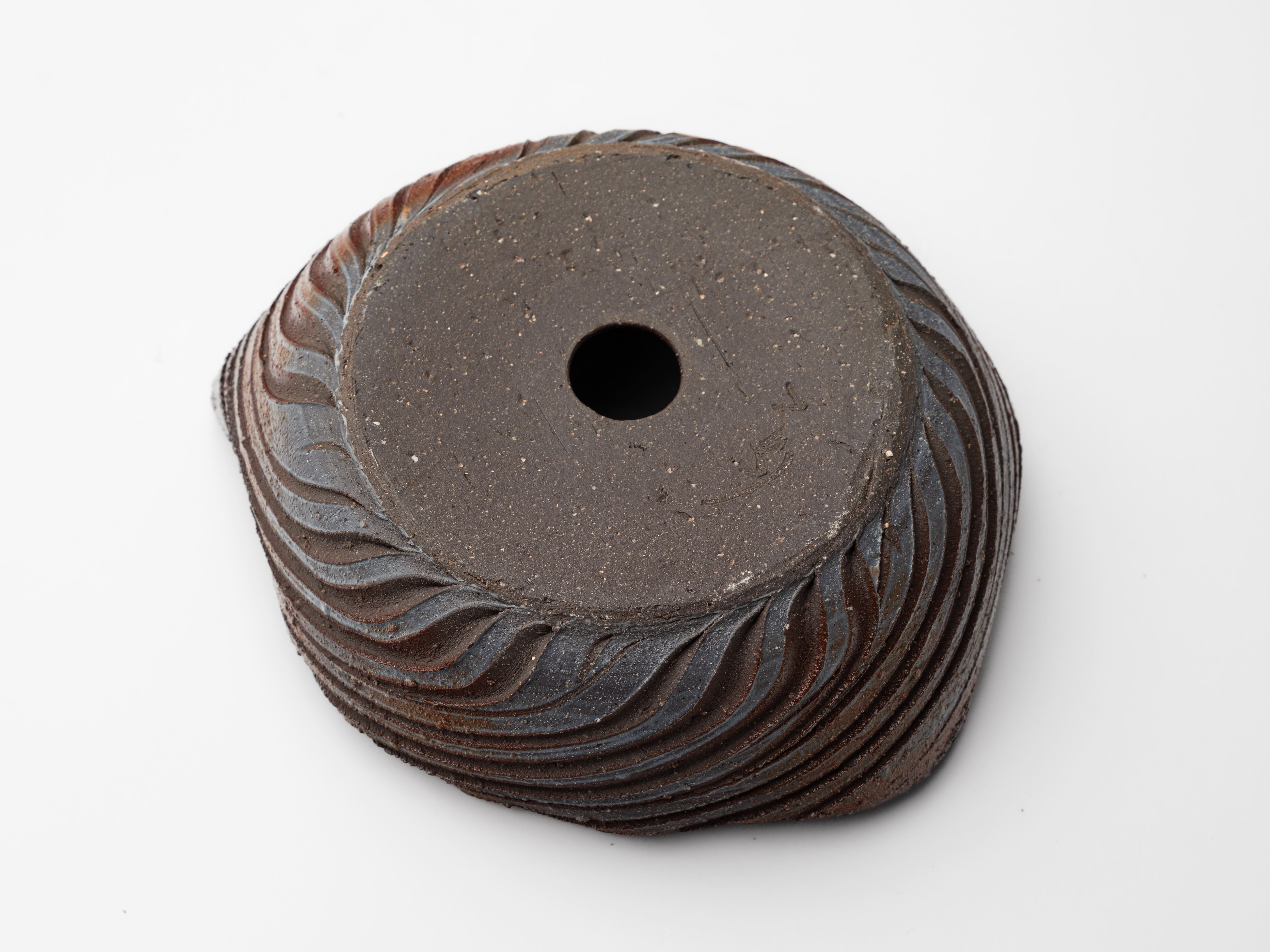特筆すべきは、遊び心あふれる「口元の揺らぎ」。 あえて高低差をつけた波打つようなリム(縁)が、鉢の中にリズムを生み出し、植え込む植物の枝ぶりや根の張りを、一つの「風景」として切り取ります。