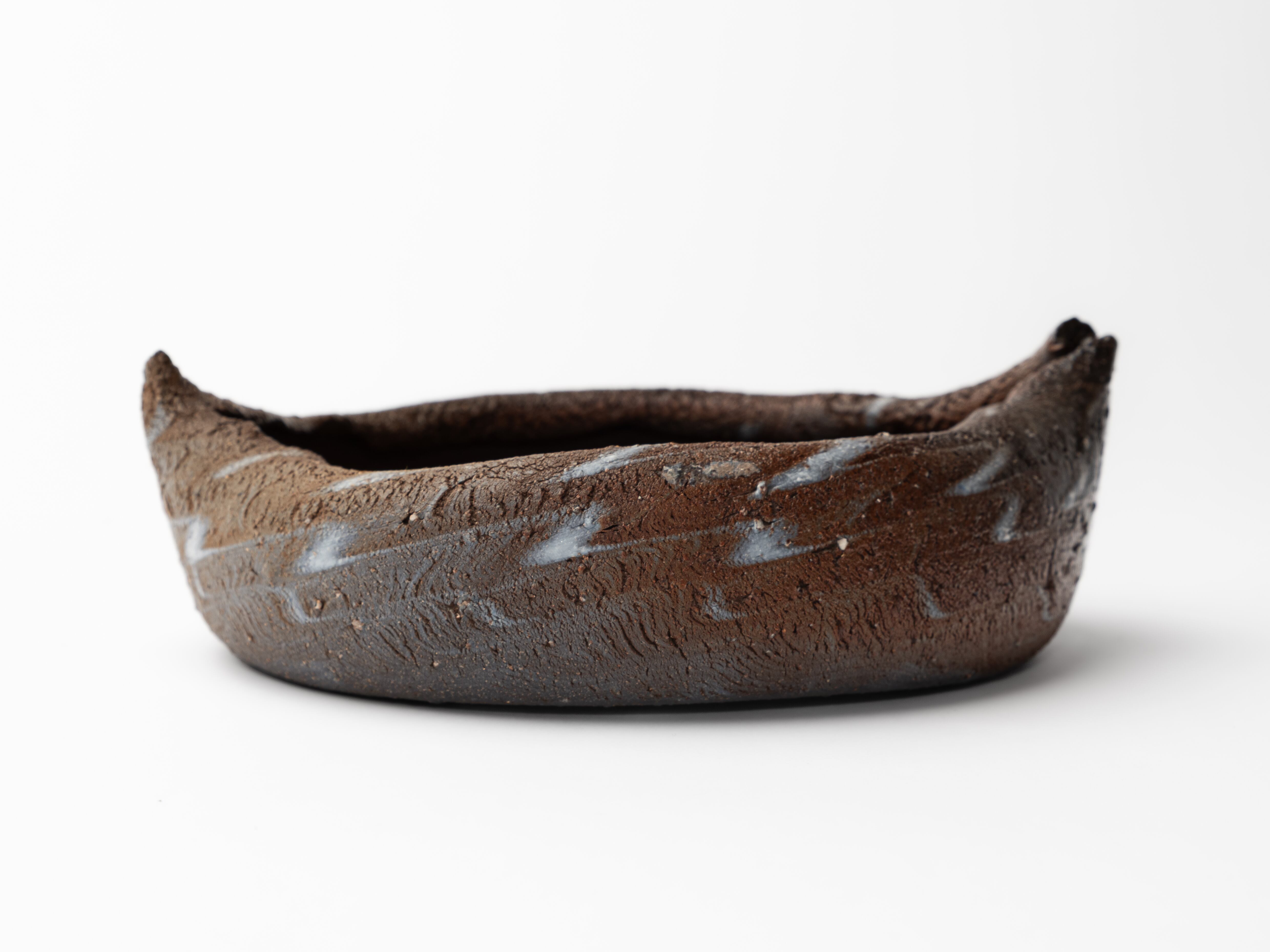 特筆すべきは、遊び心あふれる「口元の揺らぎ」。 あえて高低差をつけた波打つようなリム(縁)が、鉢の中にリズムを生み出し、植え込む植物の枝ぶりや根の張りを、一つの「風景」として切り取ります。