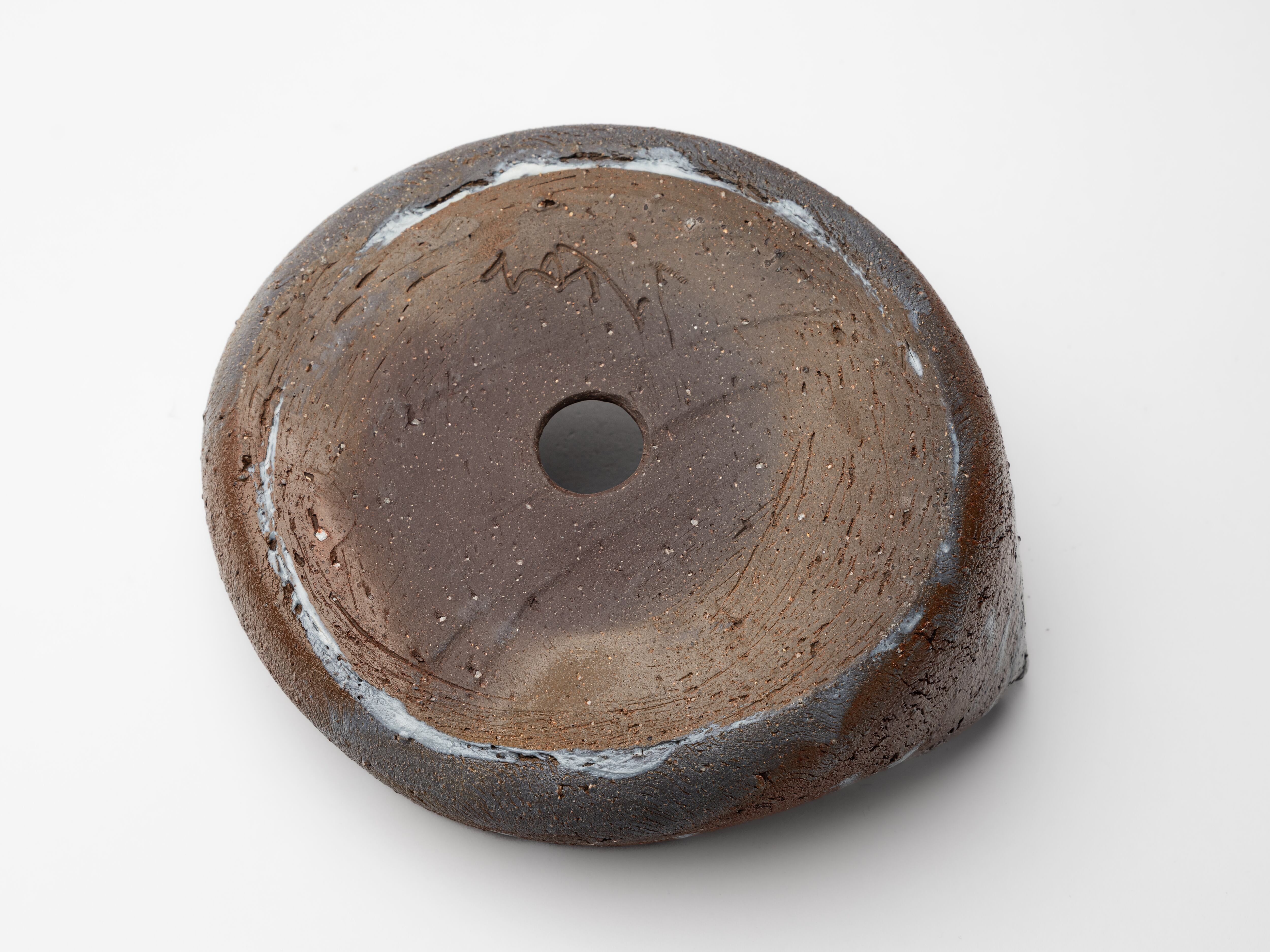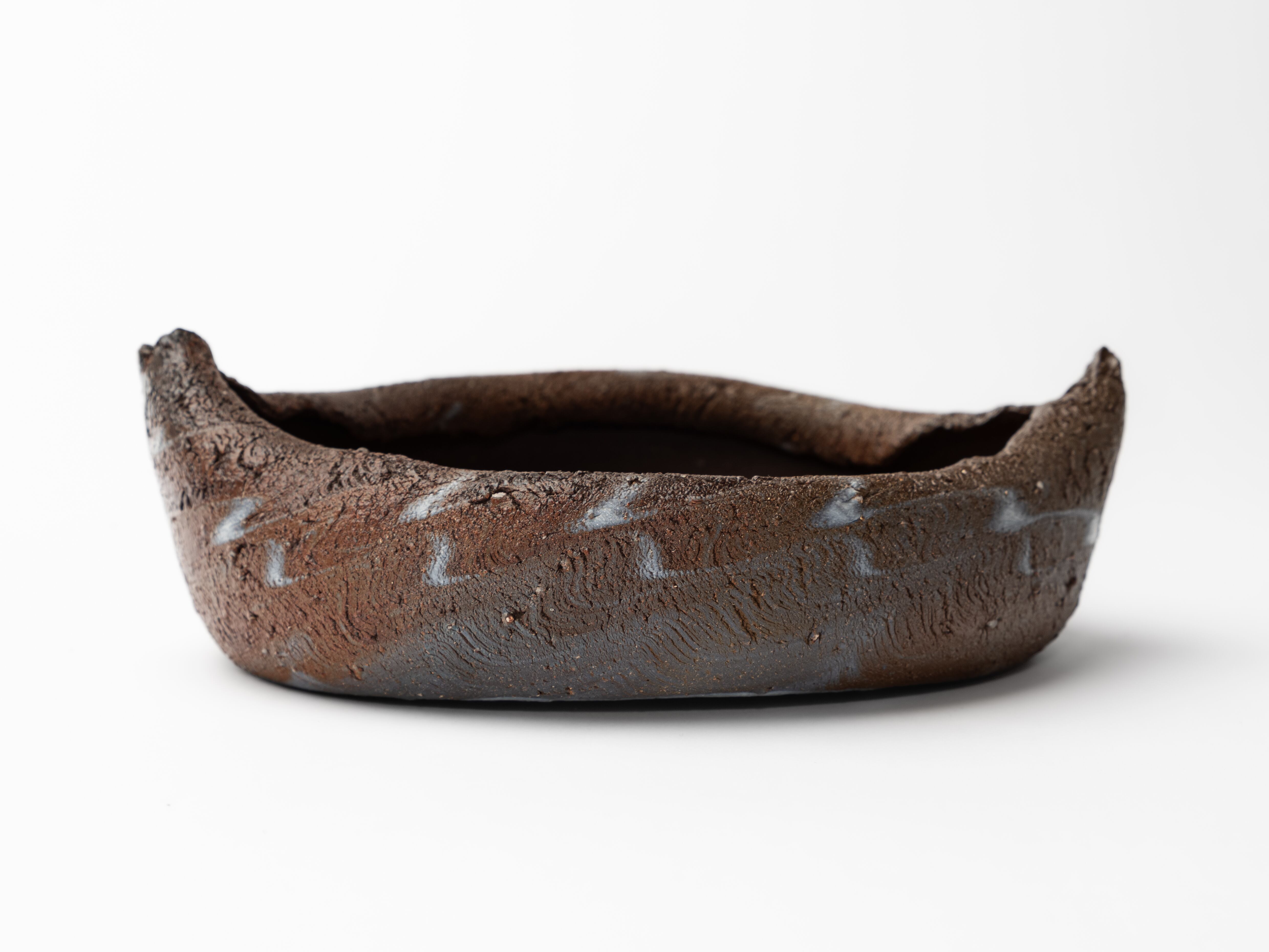深く落ち着いた土色の肌に、刷毛で掃いたように施された「青みがかった泥」。 その静かなコントラストは、まるで夕暮れの湖畔や、夜明けの稜線のような景色を連想させます。