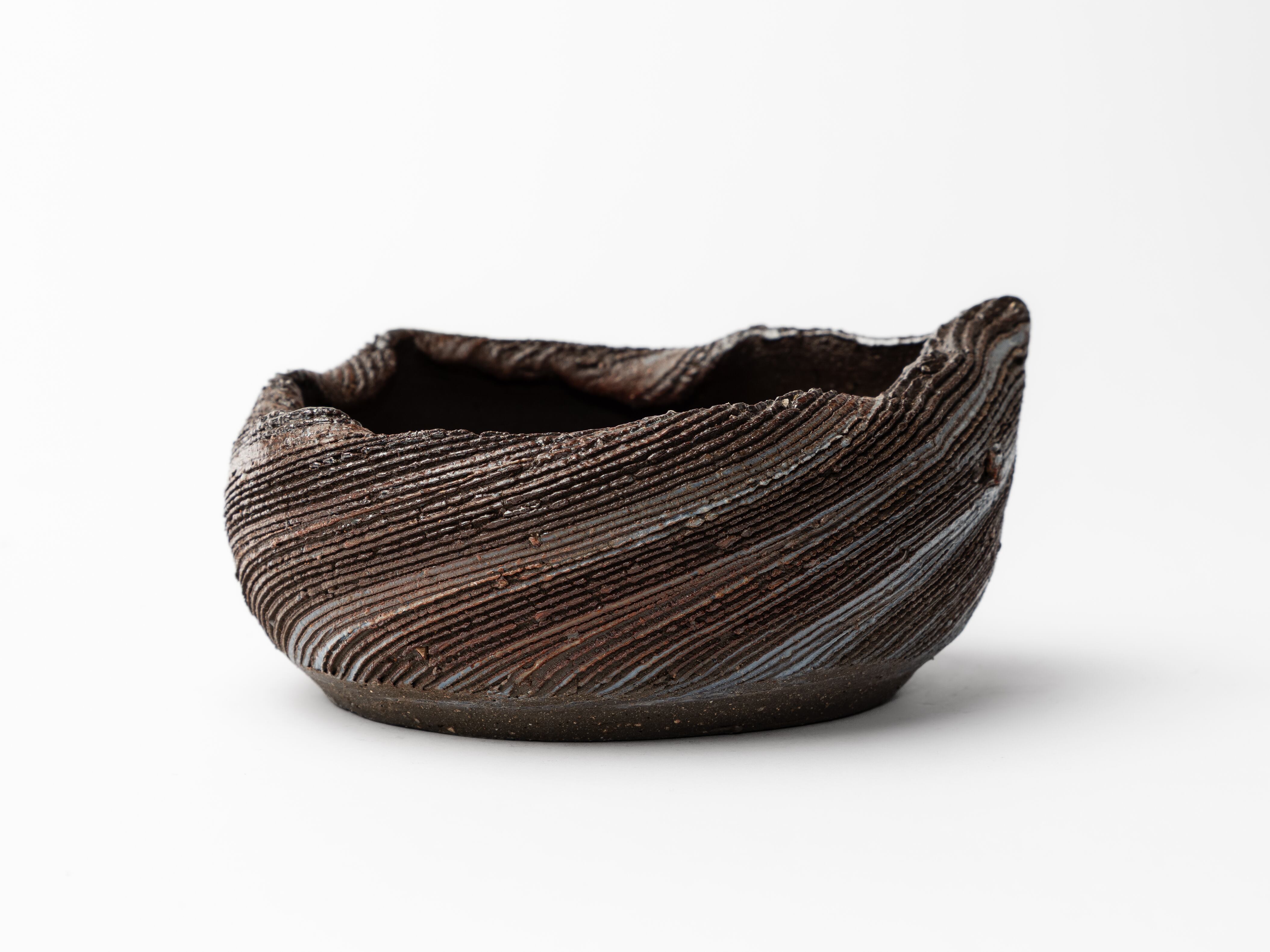 特筆すべきは、遊び心あふれる「口元の揺らぎ」。 あえて高低差をつけた波打つようなリム(縁)が、鉢の中にリズムを生み出し、植え込む植物の枝ぶりや根の張りを、一つの「風景」として切り取ります。
