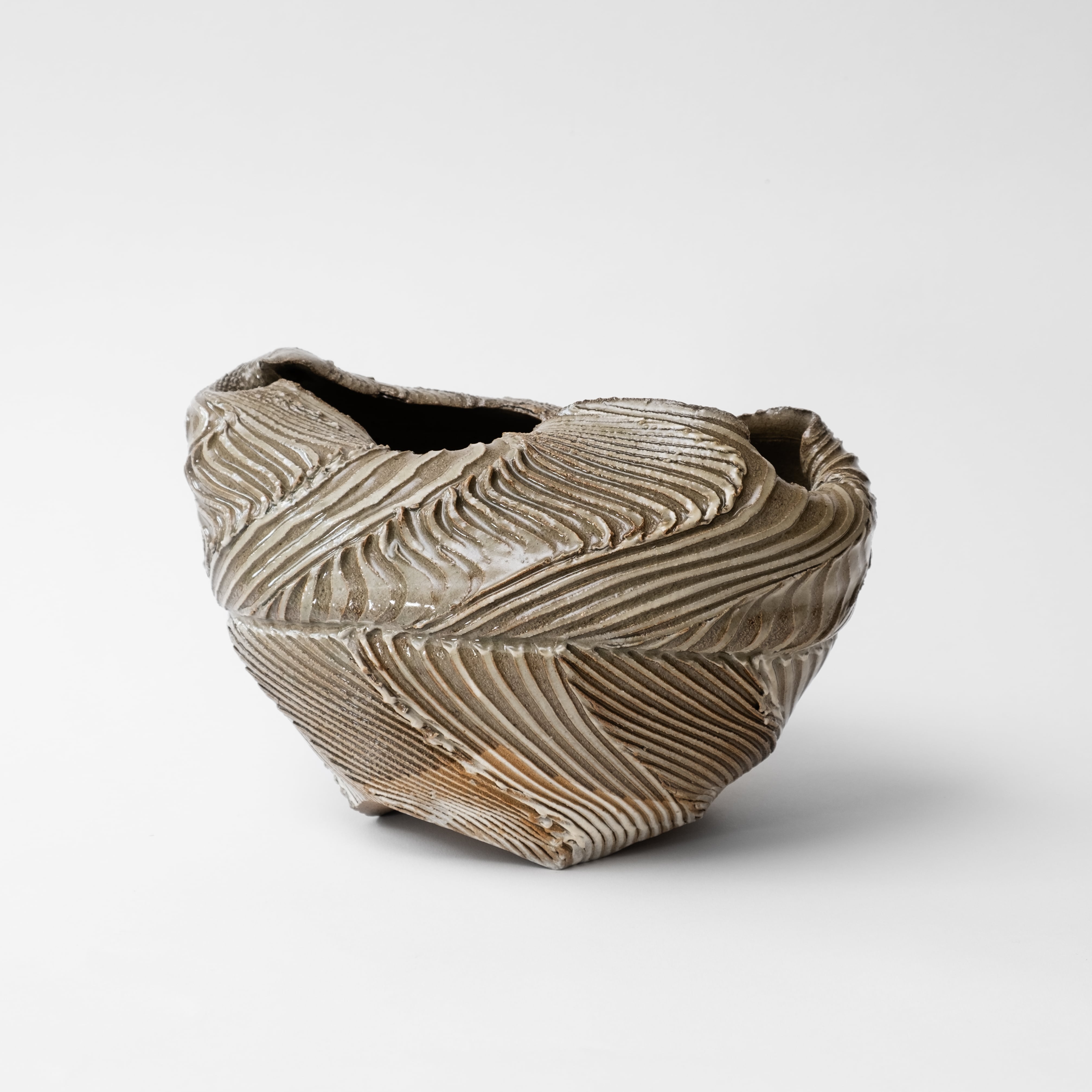 益子伝統釉並白釉と螺法の融合。