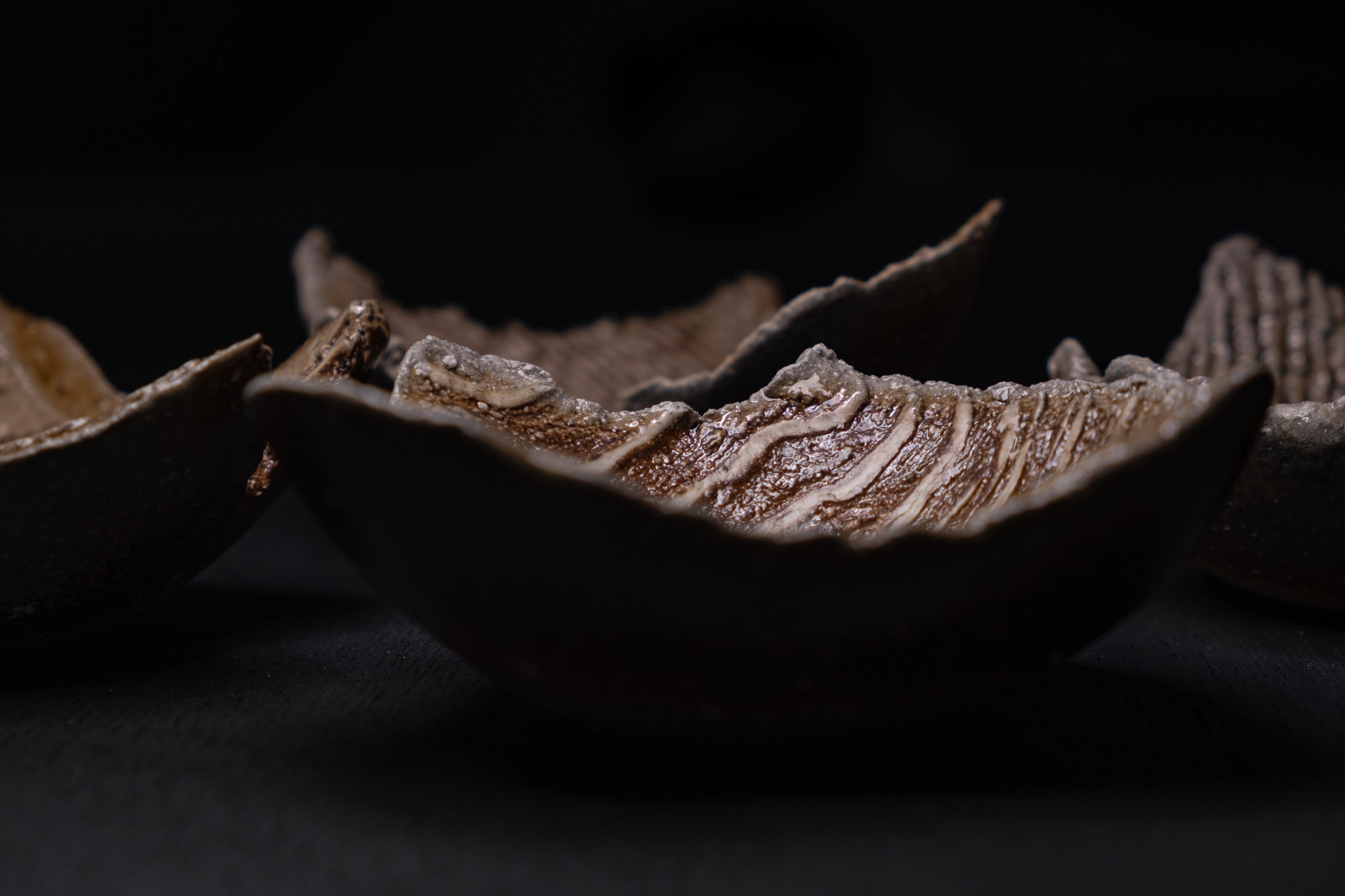 お皿の形状ですが、ろくろで螺法模様を作り、